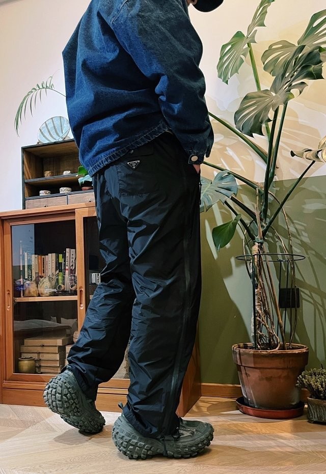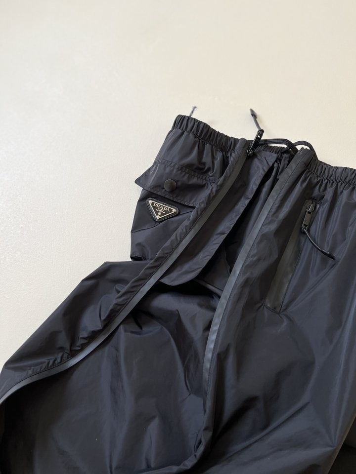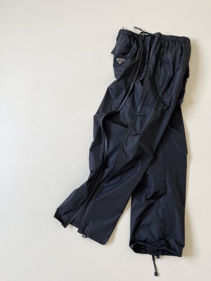 < 프라다 블랙 리나일론 지퍼 백플레이트 기능성 팬츠 >