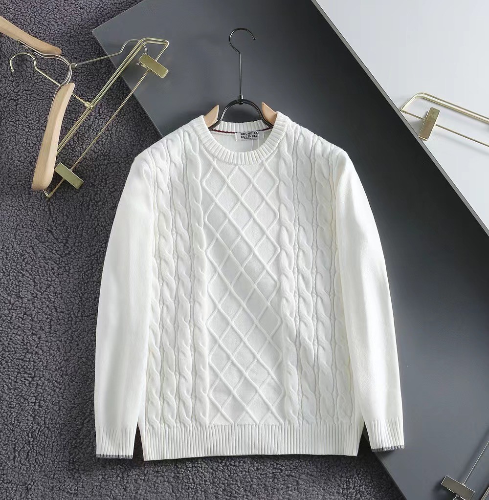 브루넬로쿠치넬리 케이블 꽈배기 양모캐시라운드 니트