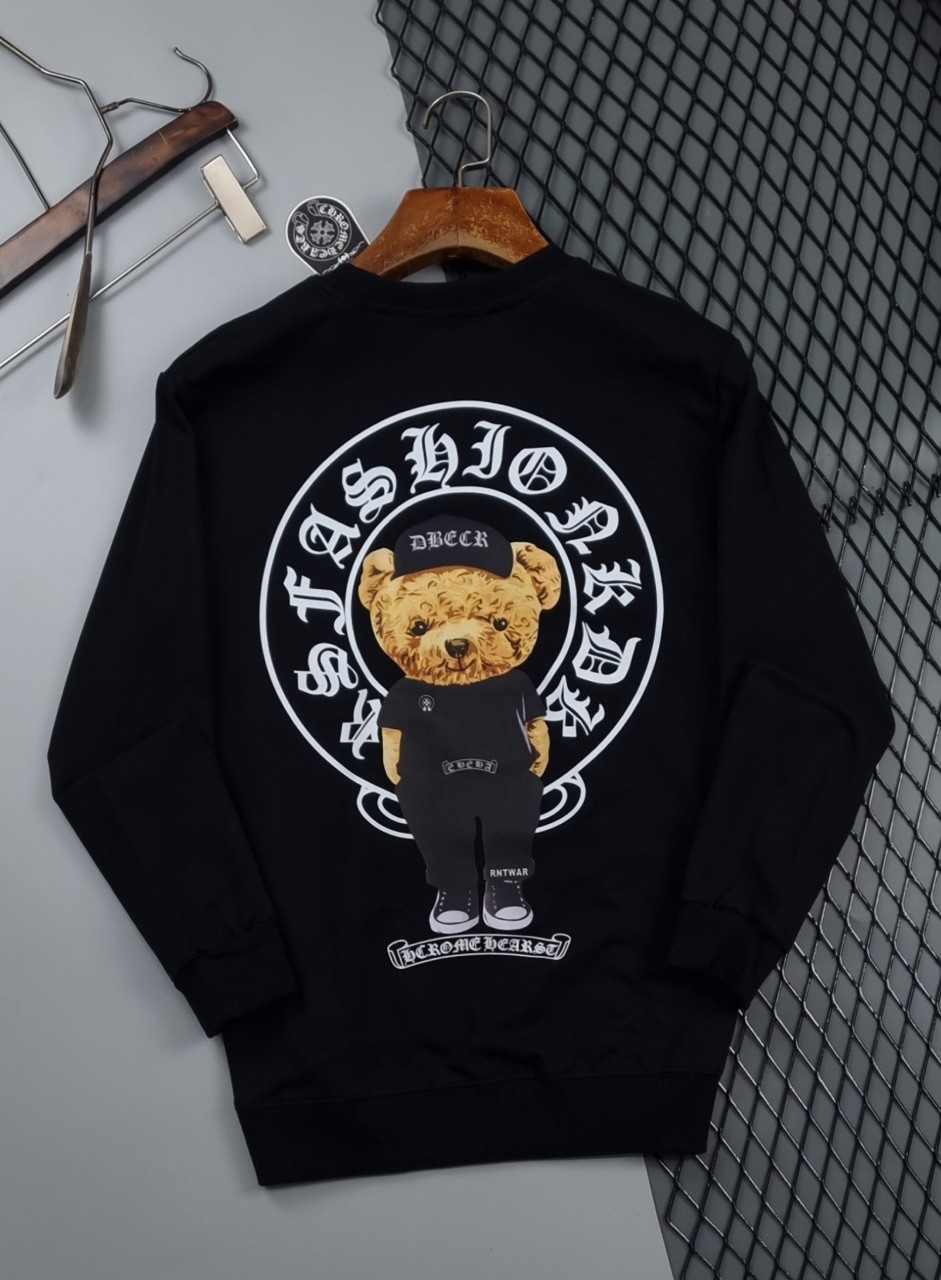 크롬하츠 커스텀 말발굽 레터링 베어 기모 쭈리맨투맨