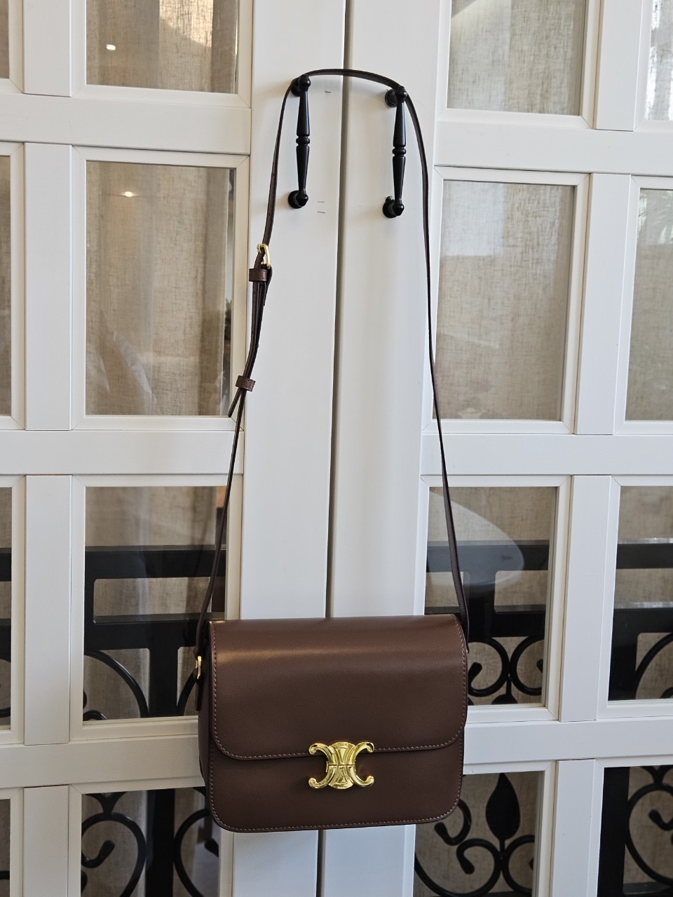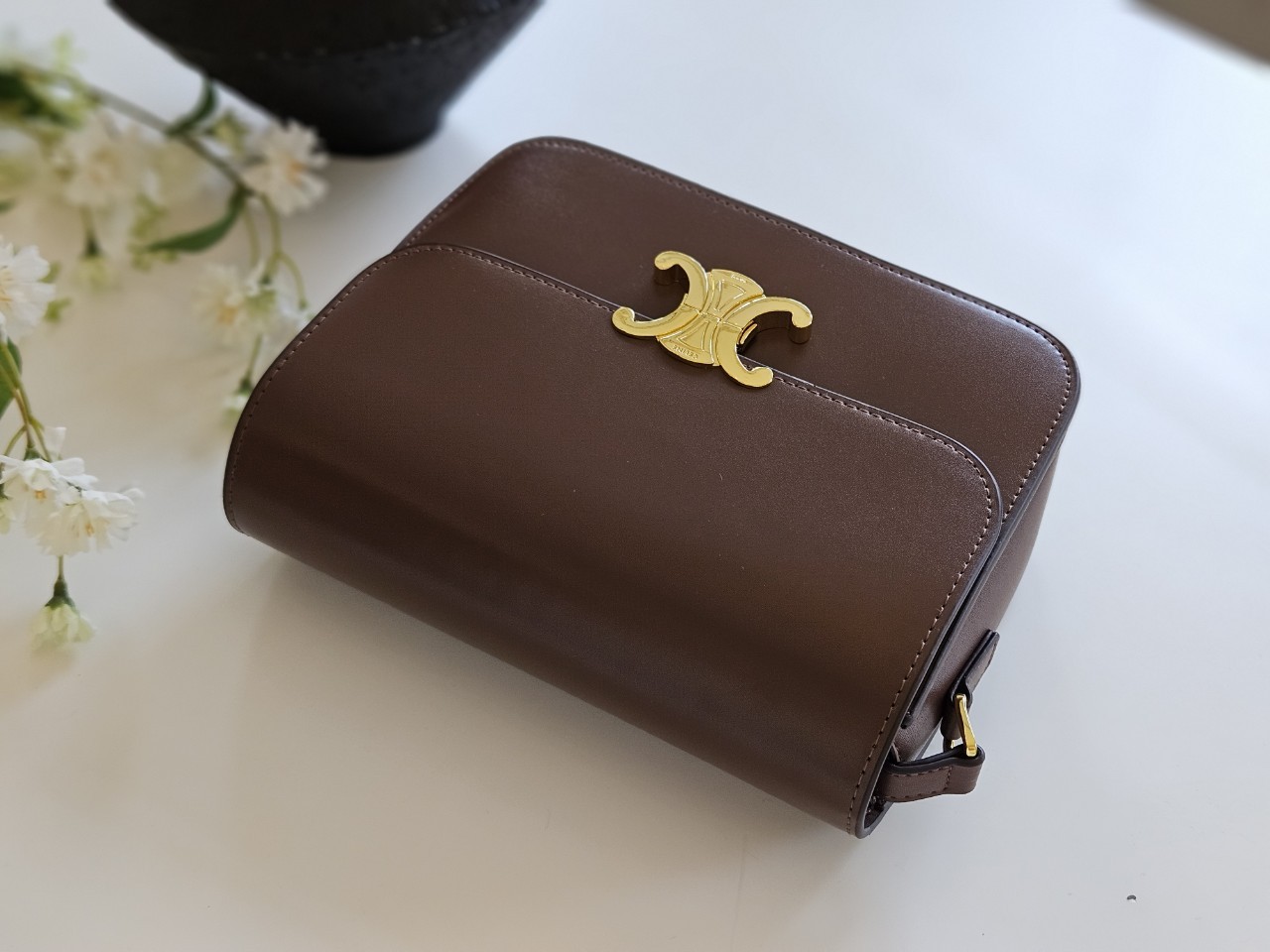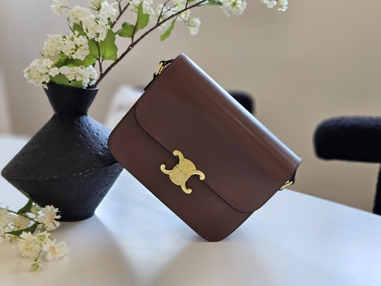 군더더기 없이 심플한 디자인과 브랜드를 상징하는 트리오페 골드메탈 하드웨어 장식이 중앙에 포인트로 보면볼수록 매력이 가는 세련된 아이템