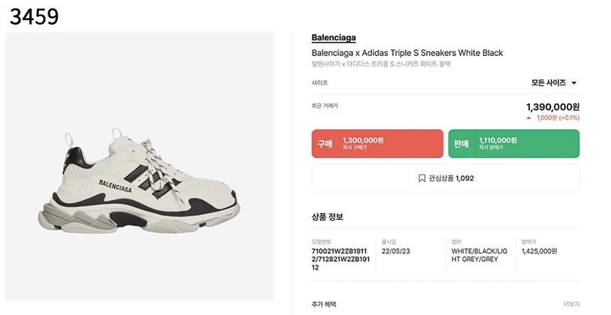 (교환,반품ok) 발렌시아가 x 아디다스 트리플 S 스니커즈